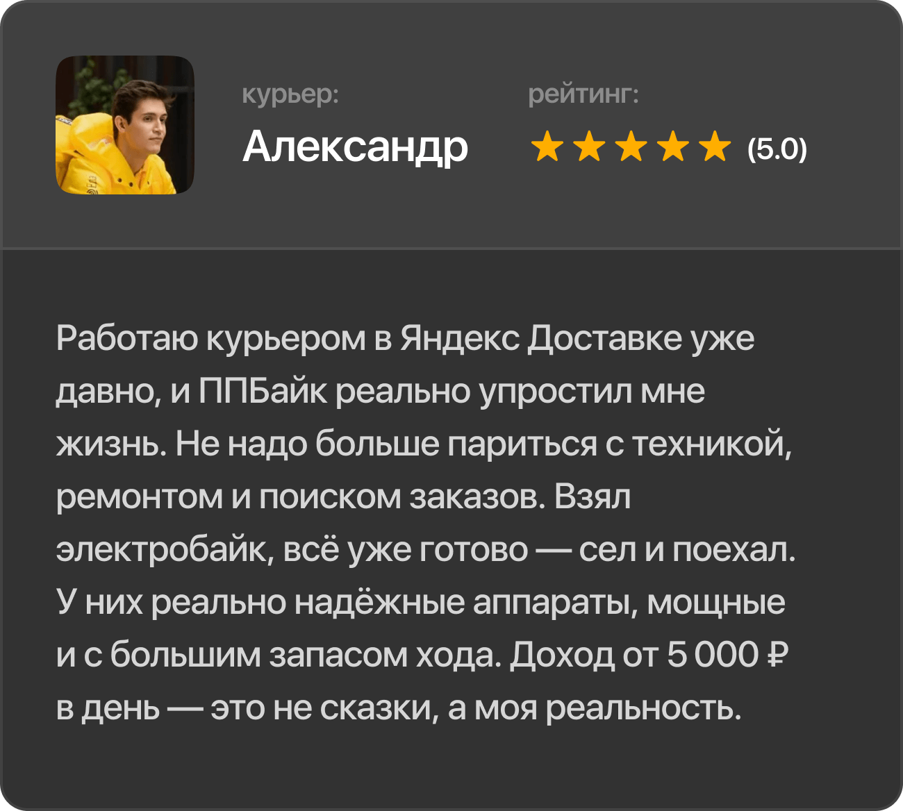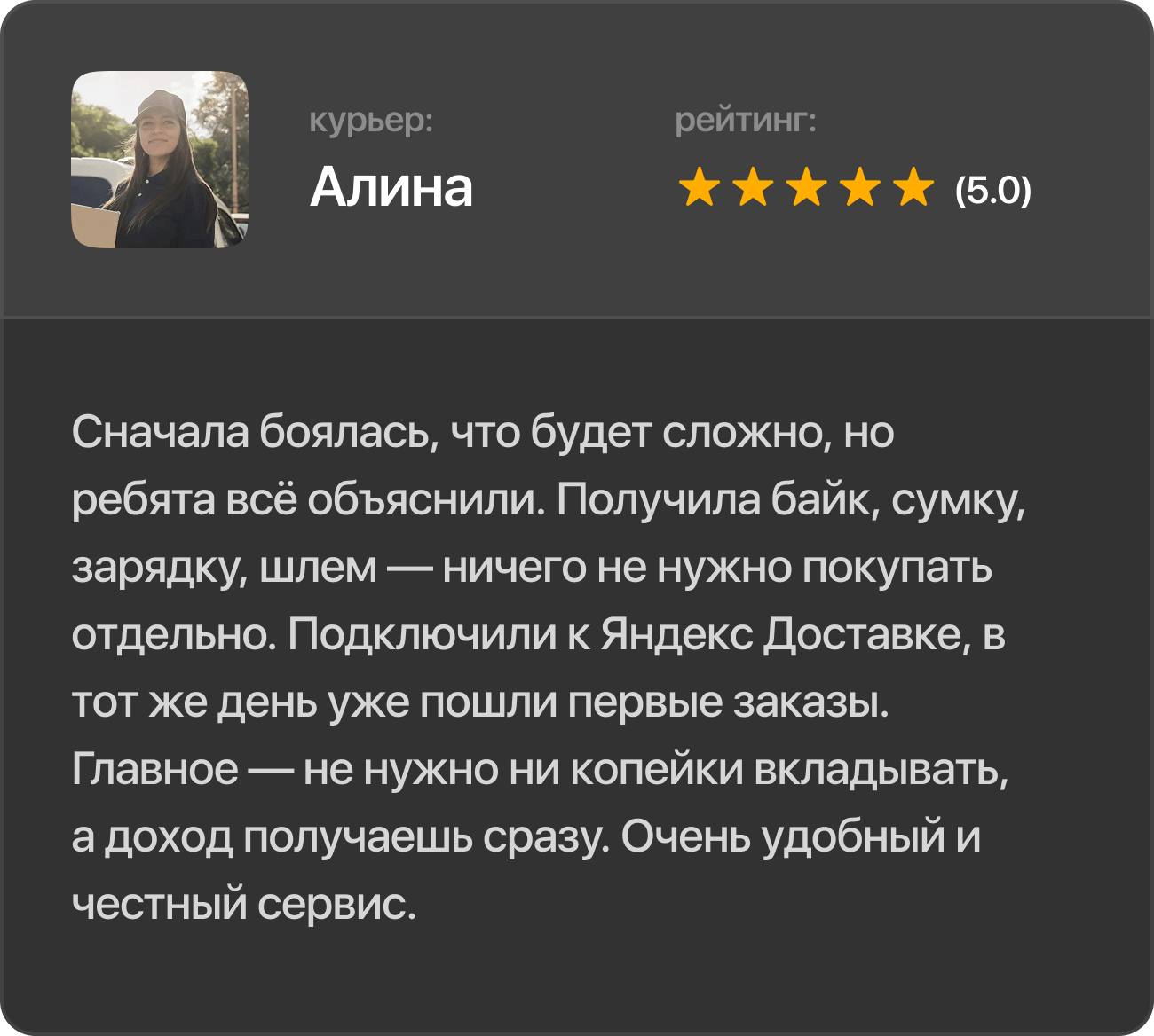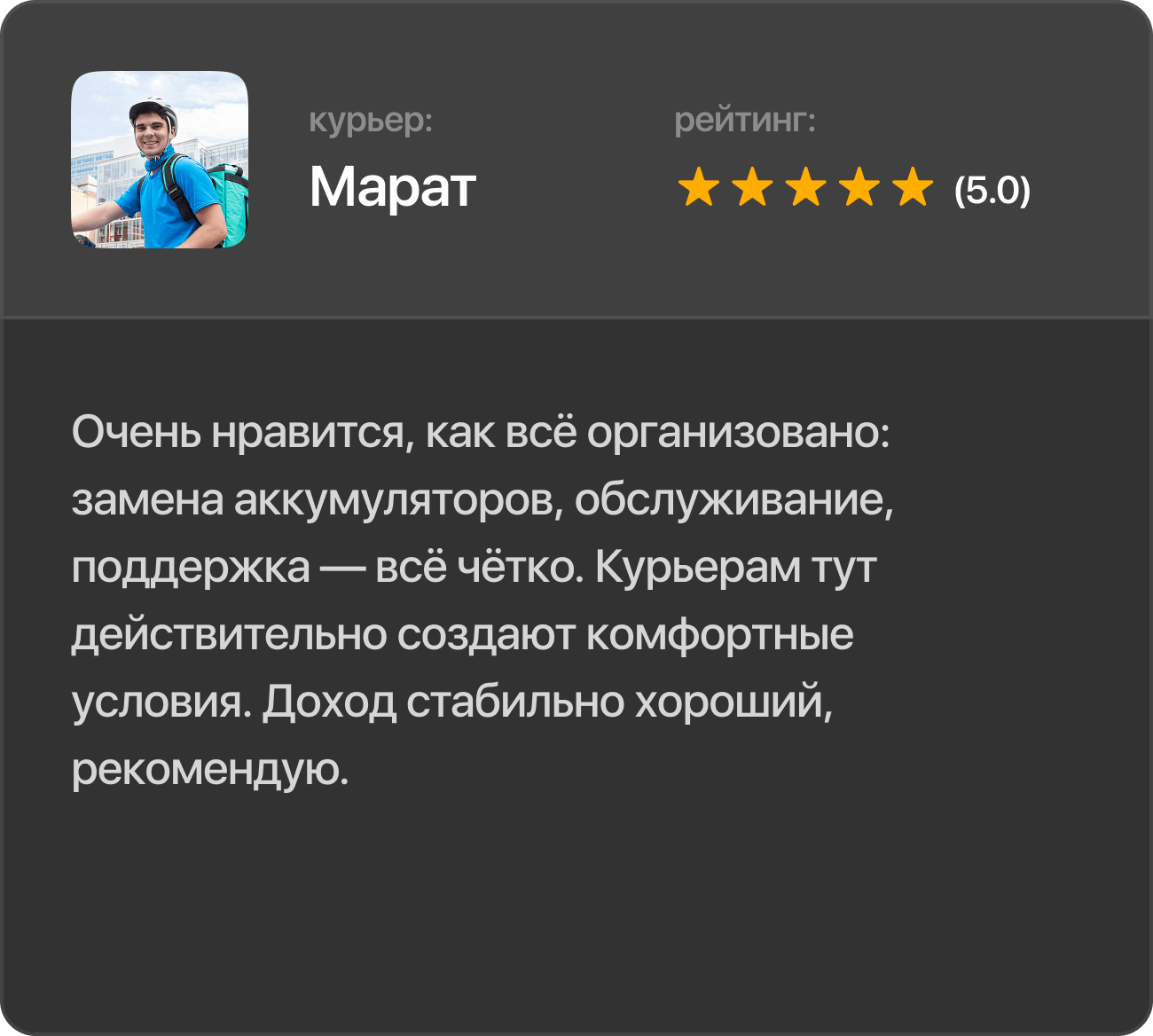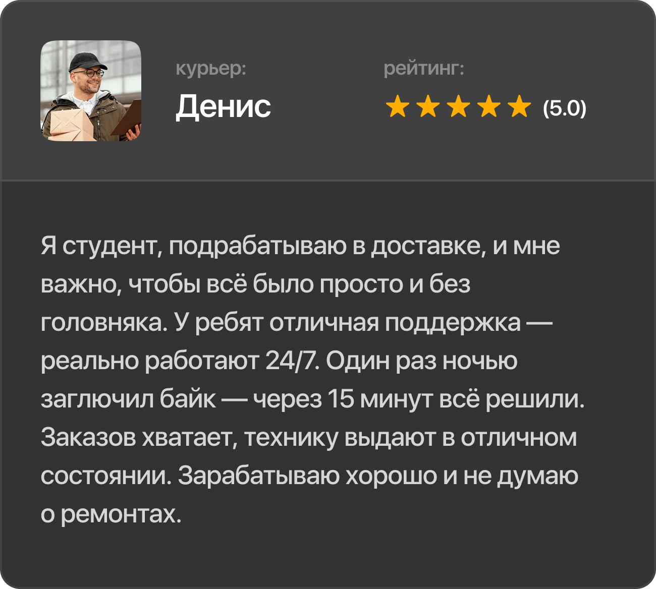 Все вопросы, связанные с ремонтом, обслуживанием, заменой аккумуляторов и другими техническими моментами, мы берём на себя. Вам не придётся тратить время или деньги на обслуживание байка. Если что-то случилось — просто сообщите, и наша команда решит проблему. Мы гарантируем исправную технику и поддержку 24/7.